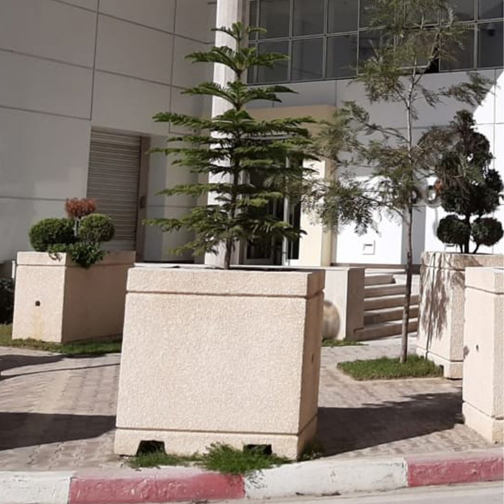 Bac a fleur géant en béton armé destiné à les ambassades pour la sécurité, dimensions : 120 x 70 x 120 cm et il pèse dans les environs de 950 et 1000 kg.