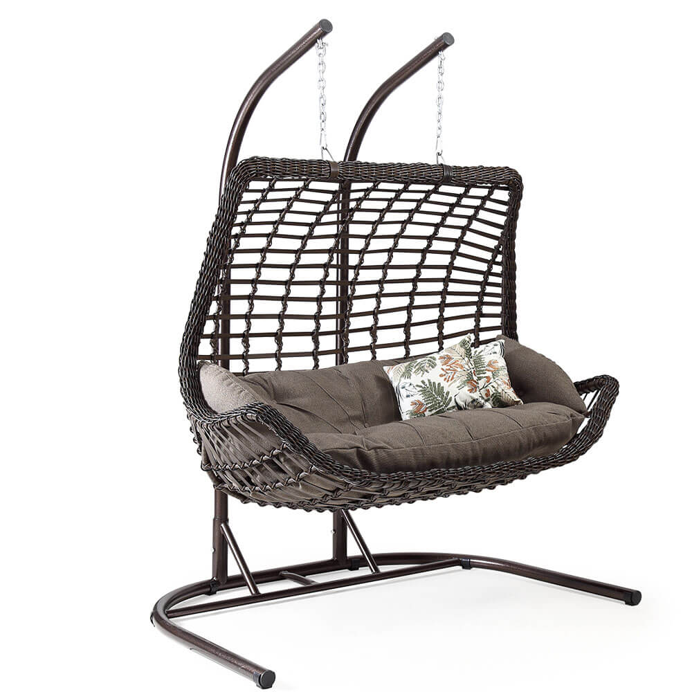 Balançoire double suspendue en rotin modèle cunda donne une touche très spéciale à votre appartement, à vos chambres d’enfants, à vos jardins d’été et d’hiver -Dim:163x90x118cm