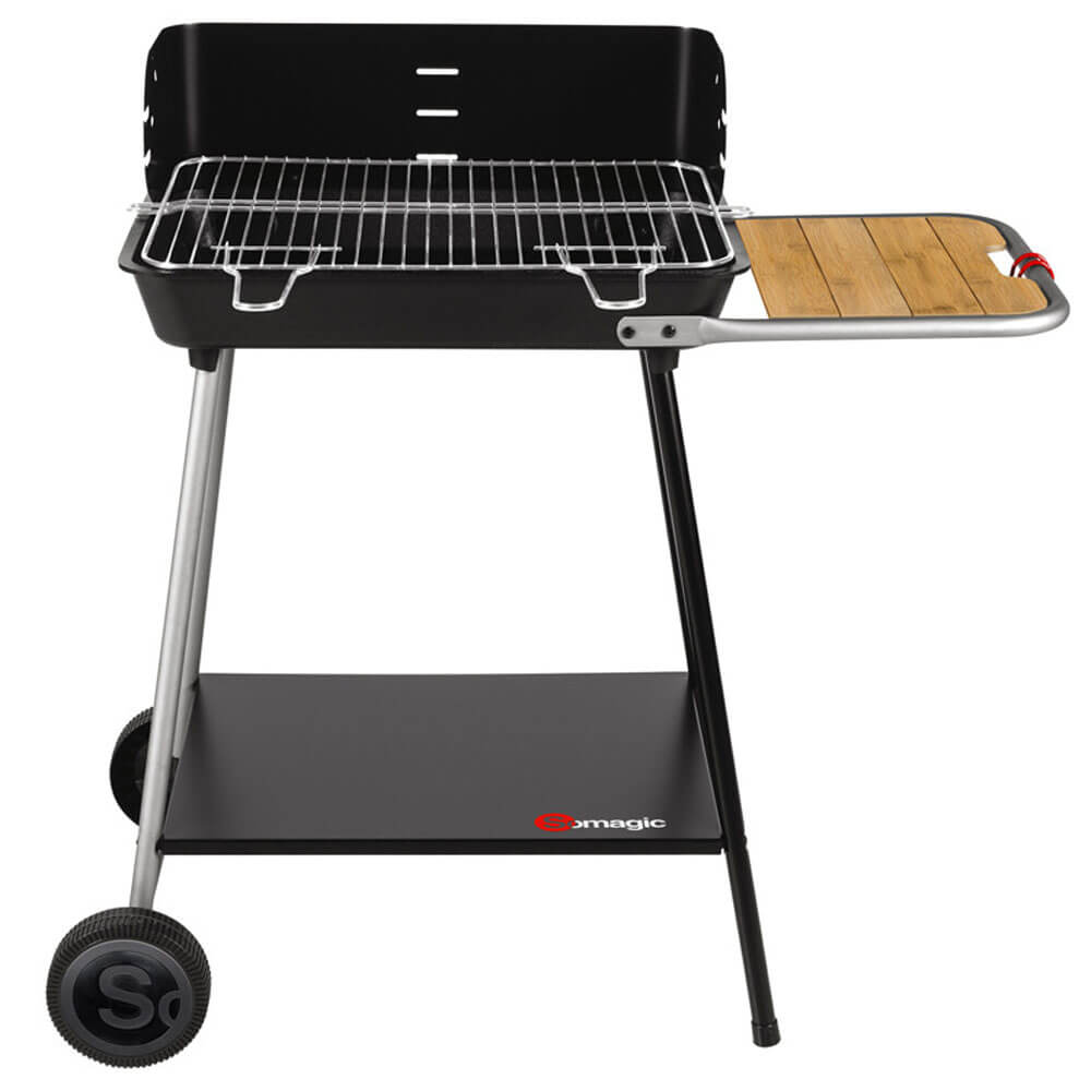 Barbecue à charbon de bois en fonte Florence de somagic – fabriqué avec une cuve en fonte (54,5 X 38,5 cm) – grille de cuisson en acier chromé est de dimensions 51 x 37,2 cm – Chariot stable et robuste avec plateforme de rangement.