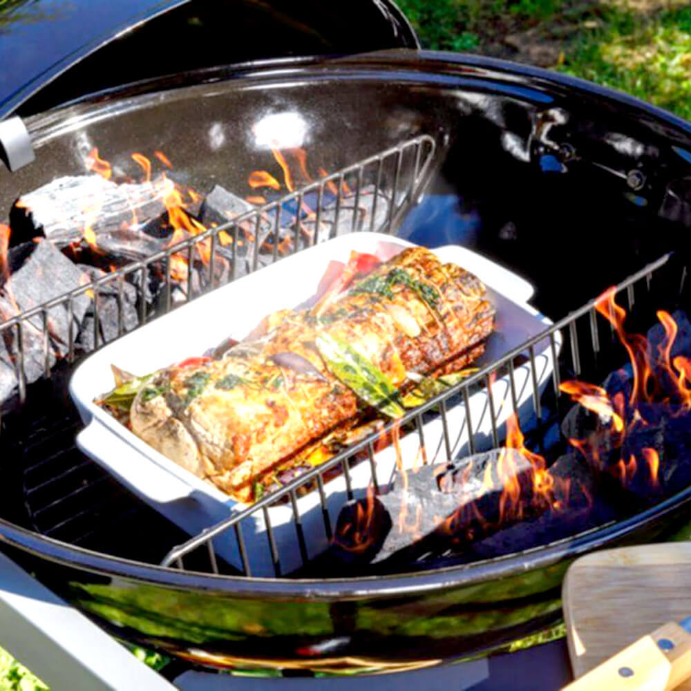 Barbecue à charbon sur chariot Montana SOMAGIC est formé d’une cuve en acier émaillé Ø 57 cm – une grille de cuisson en acier chromé Ø 55 cm et 2 verticales pour une cuisson indirecte – Adaptez vos cuissons, en fonction de ce que vous souhaitez.