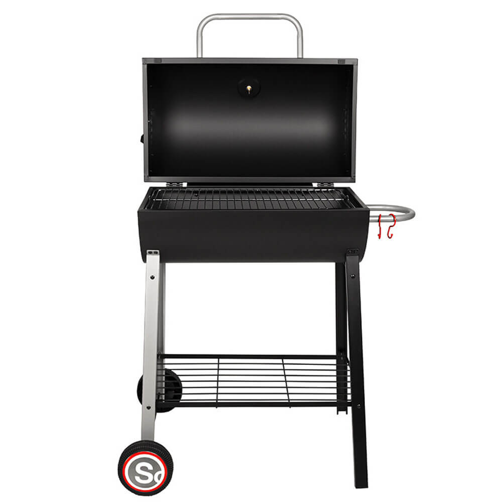 Barbecue a charbon en acier laqué Dakota de somagic – fabriqué avec une cuve en acier laqué 60 x 37 cm – grille rectangulaire en acier chromée 55 x 32,5 cm – Chariot stable et robuste avec plateforme de rangement.