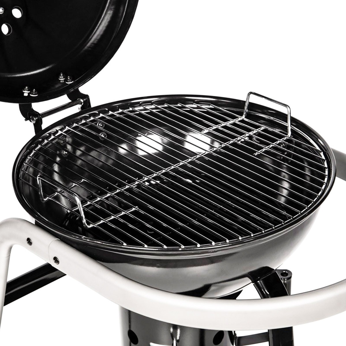 - Couvercle de cuisson en acier émaillé avec système d’aération et cendrier et grille de cuisson en acier chromé diamètre 43,5 cm