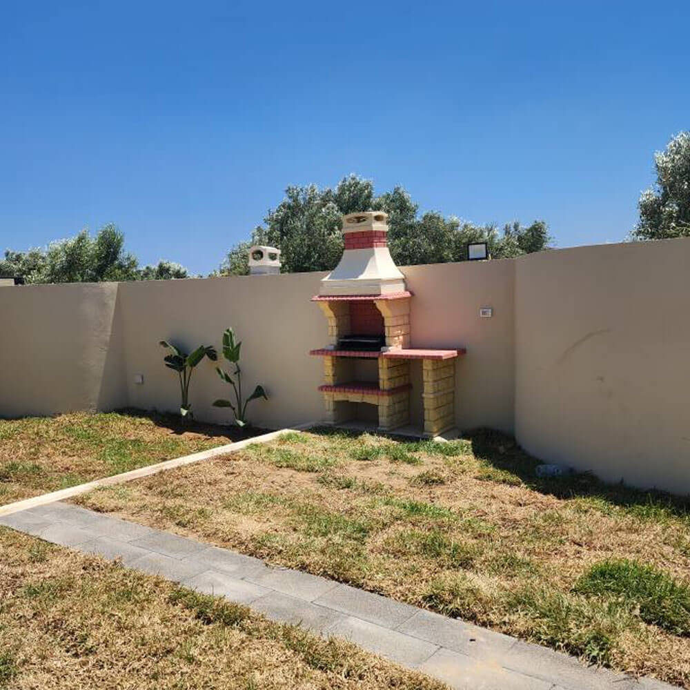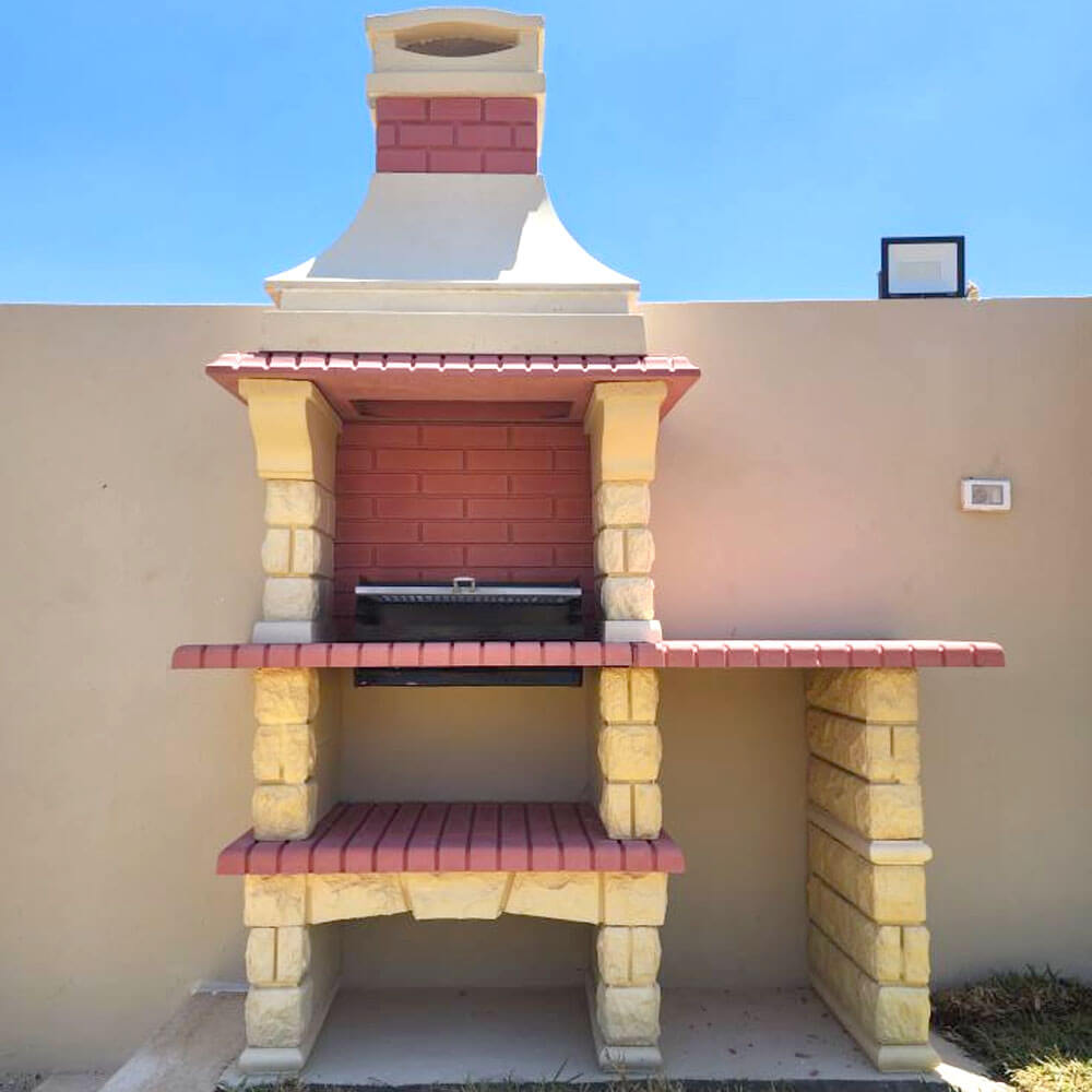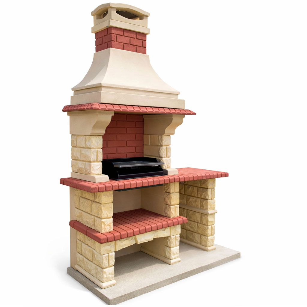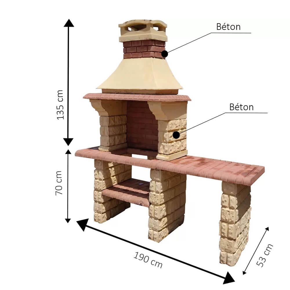 Barbecue en béton avec plan de travail – Réf : BBP10- se modèle de barbecue fixe est en béton avec Hôte – pack grill encastré en acier – plan de travail – dimension : 195 x 53 x 205 cm