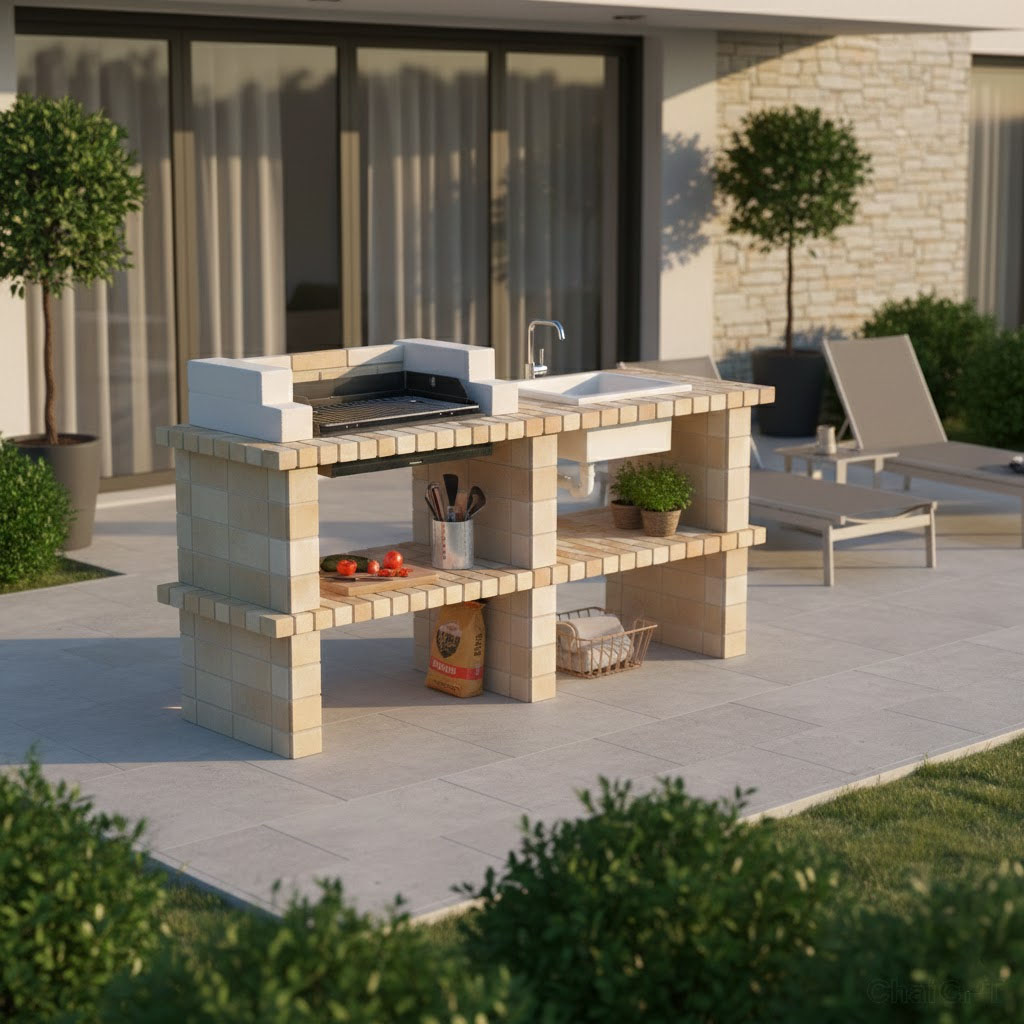 Barbecue en Briques réfractaires avec évier réf BB25