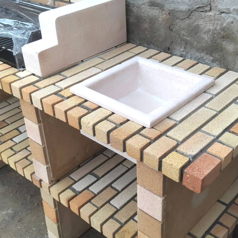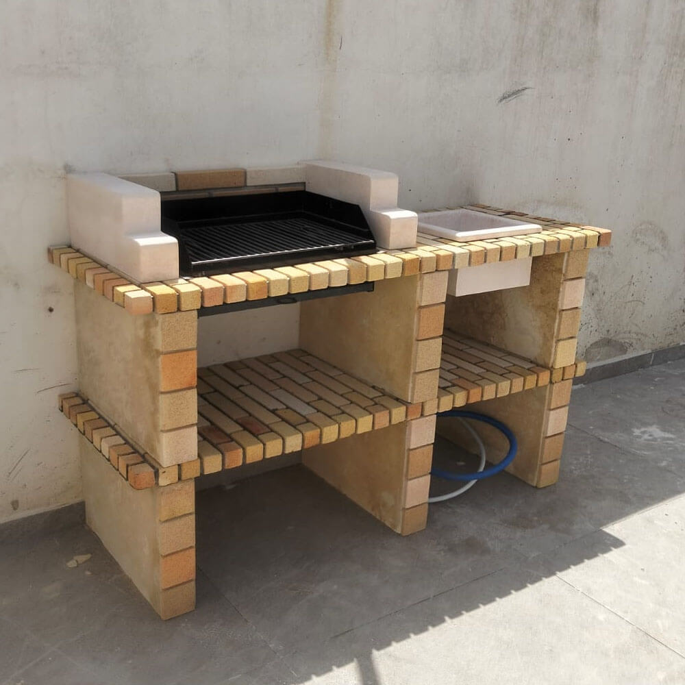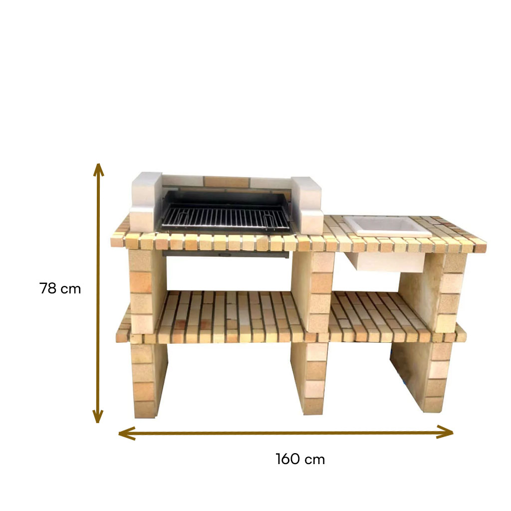 barbecue en briques réfractaires avec évier carrée,  finition et désigne exceptionnel, d’une Dimension de 160x 56 x 78 cm, possibilité d’augmenter ou d’ajouter des extensions