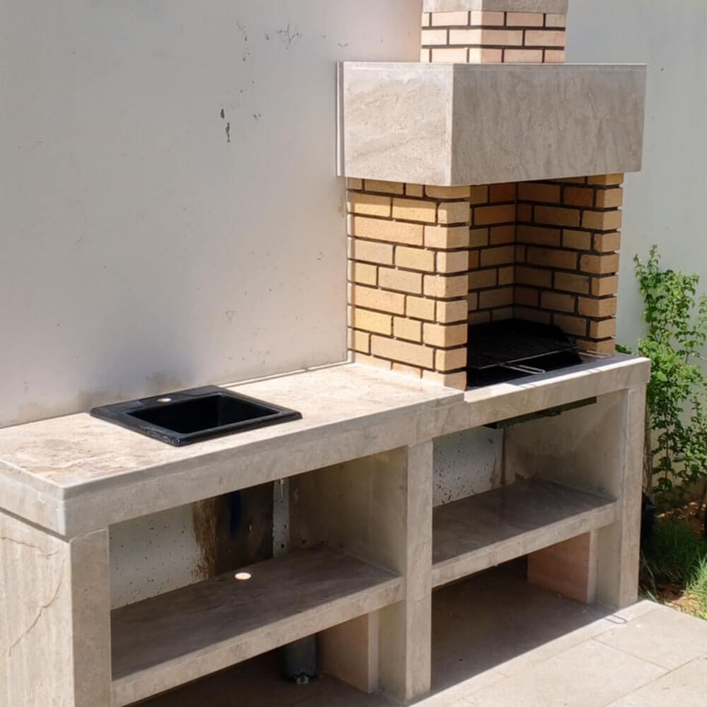 Barbecue en marbre et briques refractaire avec evier