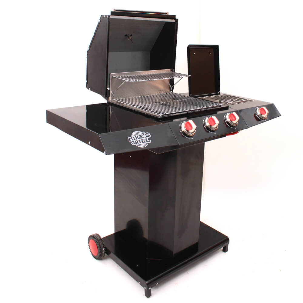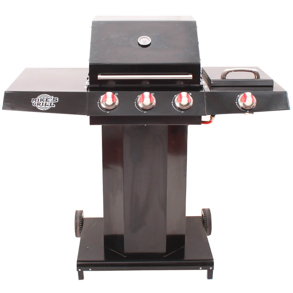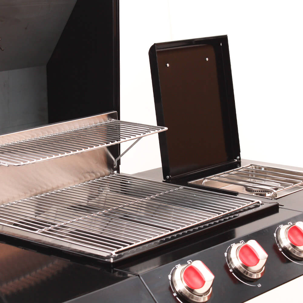 Barbecue gaz 3 Brûleurs et auxiliaire en acier noir