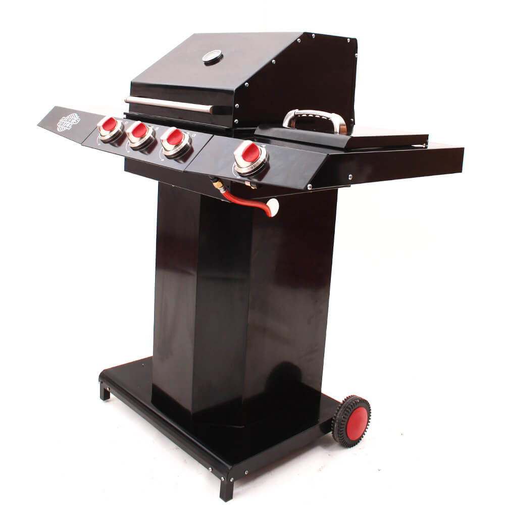 Barbecue gaz 3 bruleurs et 1 auxiliaire en acier noir