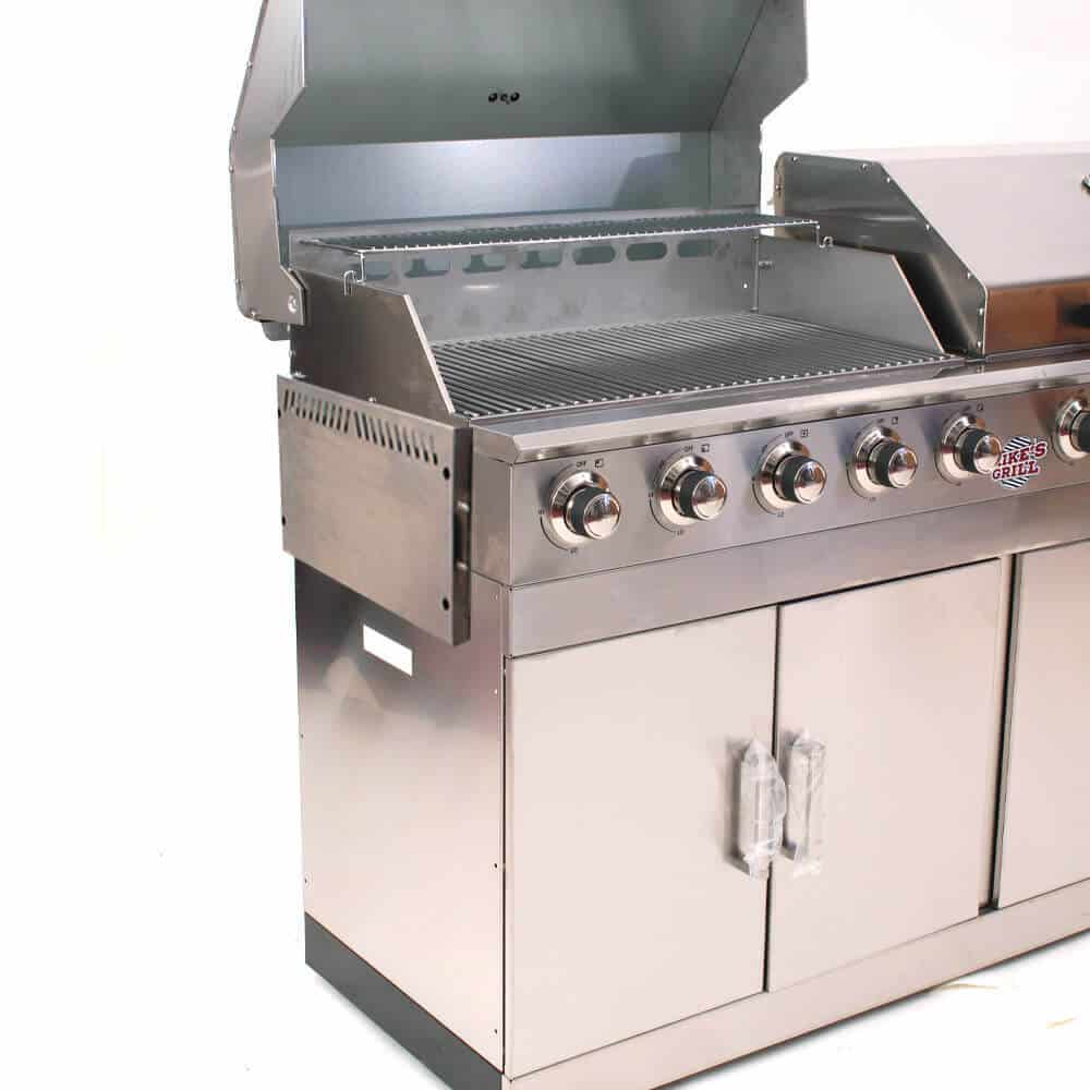 - MATÉRIAUX ROBUSTES : Couvercle double paroi en inox avec thermomètre intégré ; chambre de combustion en inox ; panneau de commande, tablettes latérales, 3 modules bas et 4 portes à double paroi en inox