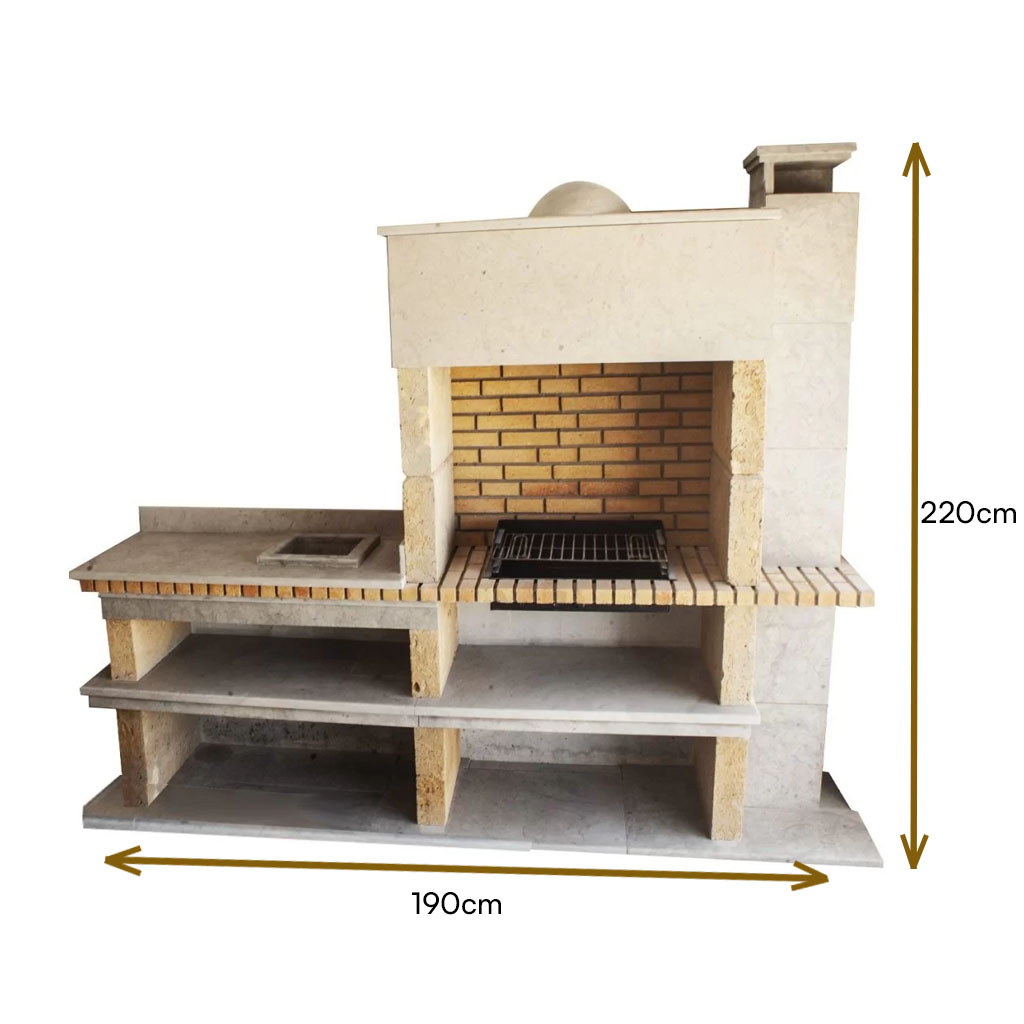Ce modèle de barbecue de jardin peut être une excellente addition à votre espace extérieur, offrant à la fois une fonctionnalité pratique et une esthétique rustique. fabriquer en pierre, briques réfractaires et en marbre.