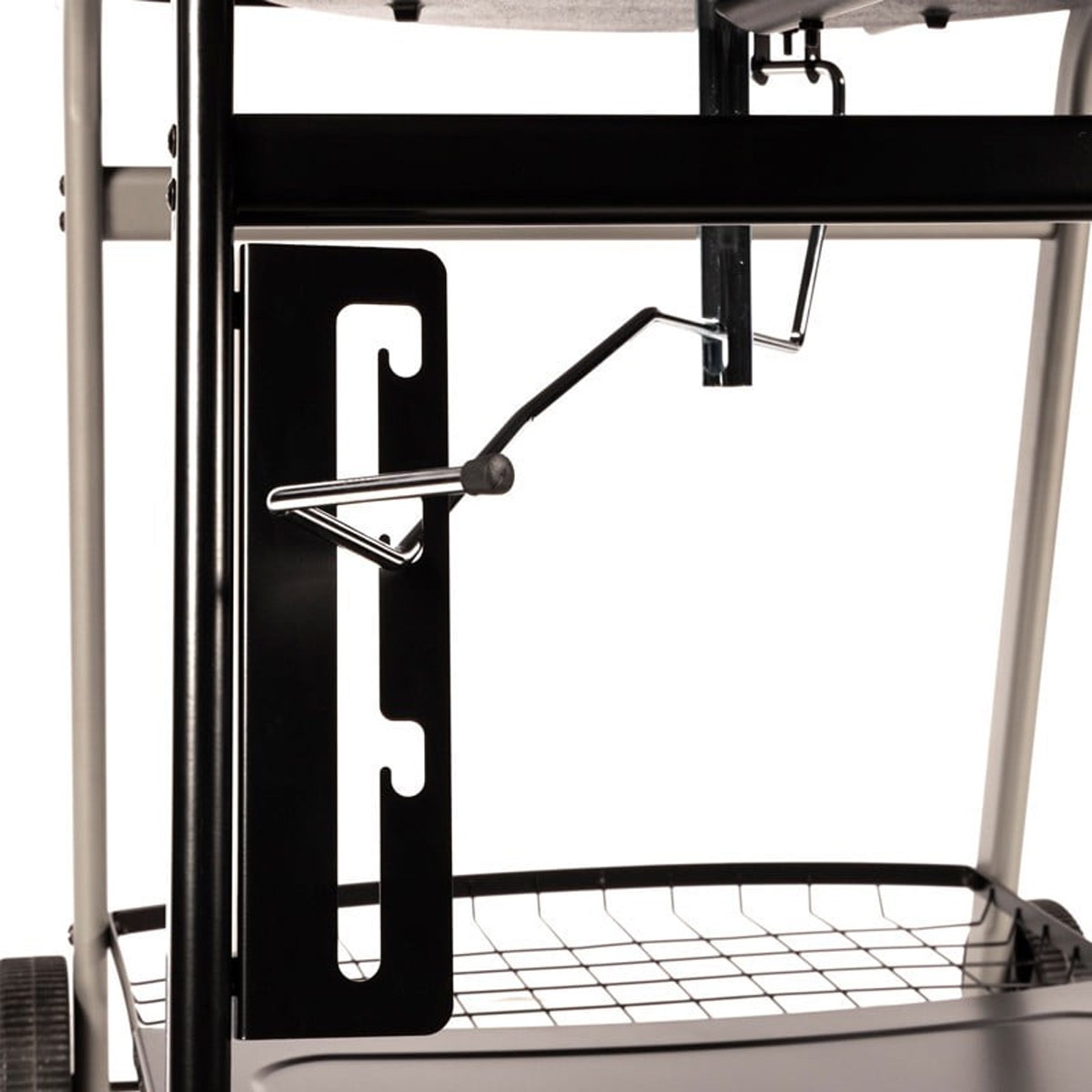 - Chariot stable et robuste avec tablettes latérales, plateforme de rangement avec panier porte-bouteilles et crochets porte accessoires