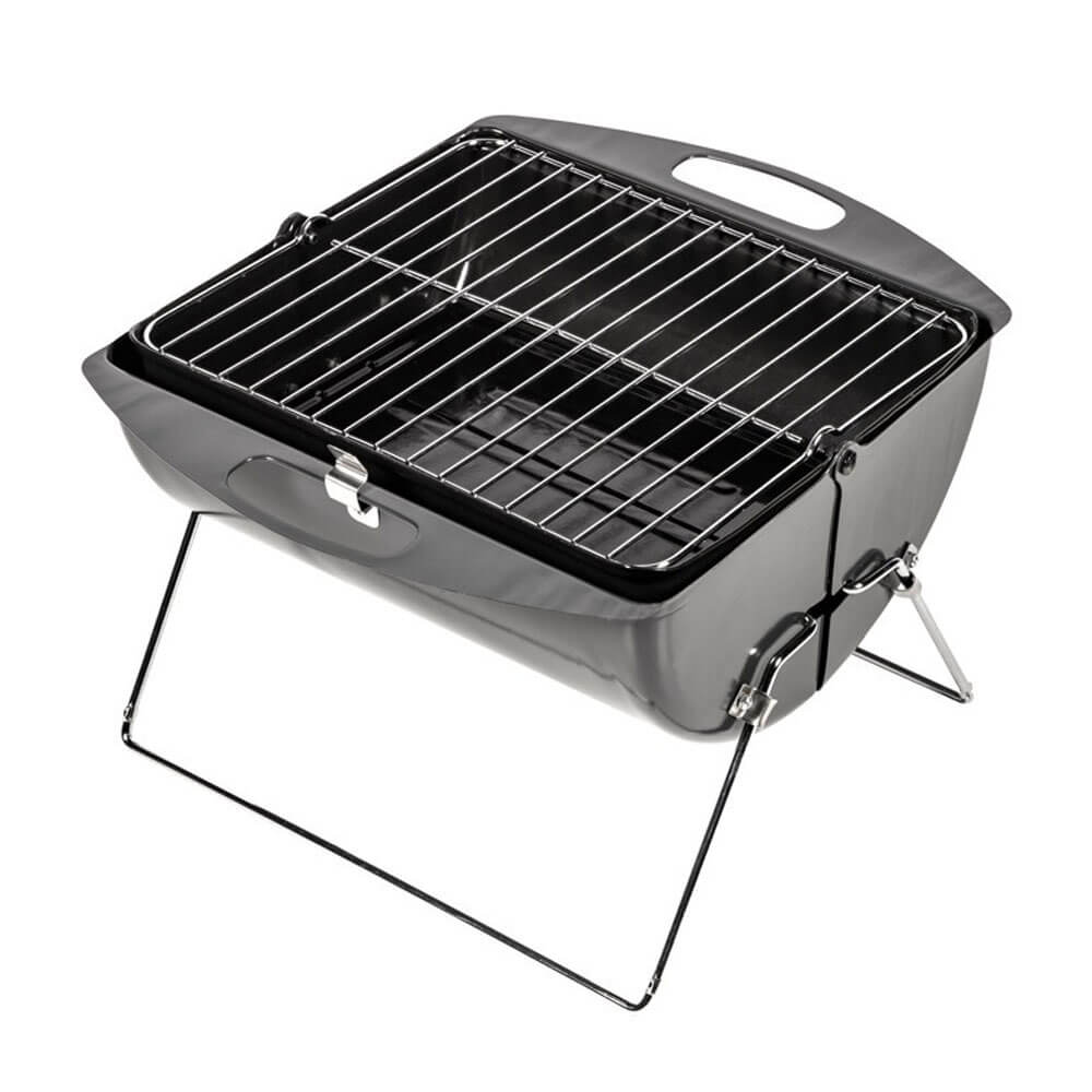 Barbecue valisette avec cuve en acier émaillé et Couvercle de protection en acier laqué – Idéal pour le pique-nique – convient à 6 personnes – dimension de grill 31,5 x 27,5 cm