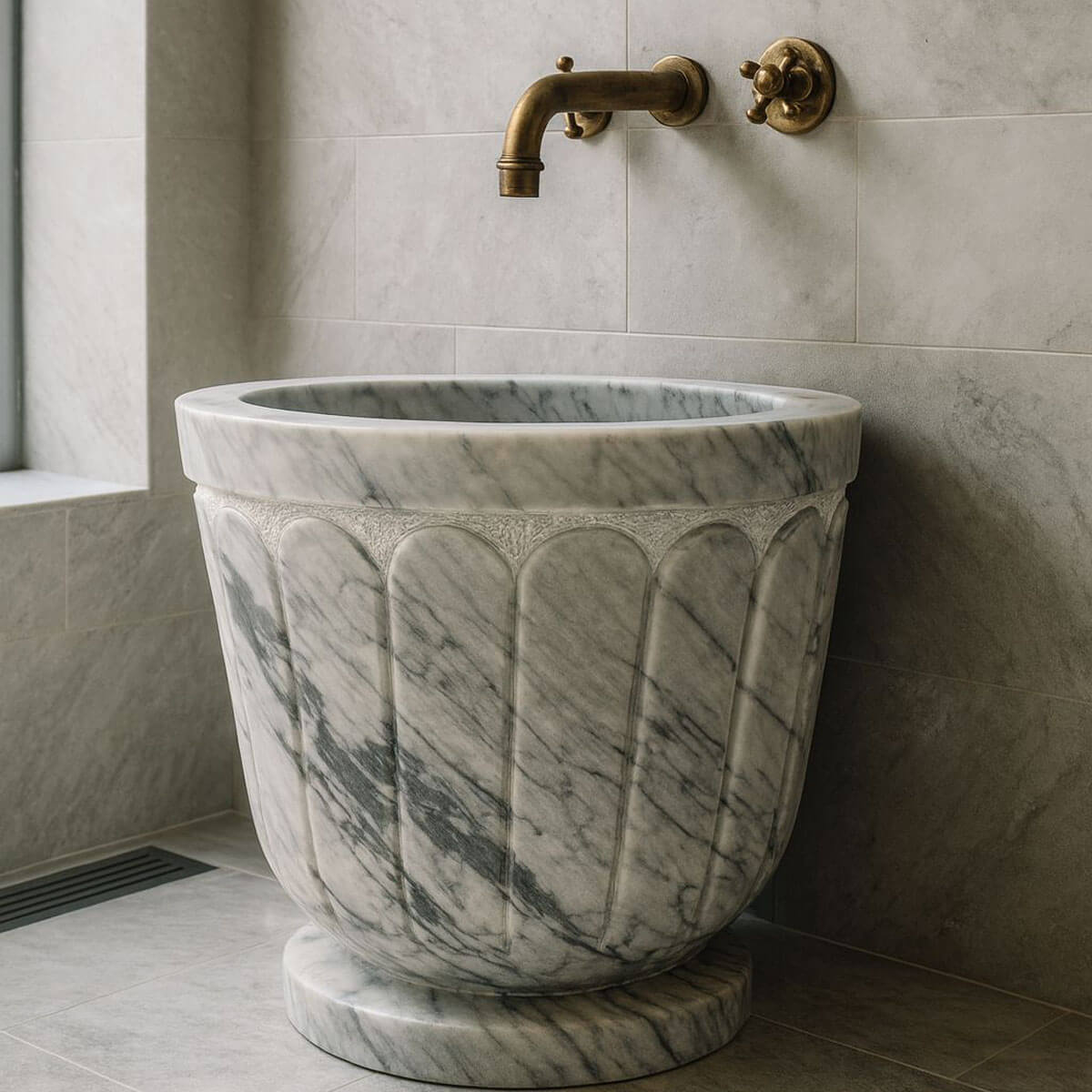 Cette bassine en marbre blanc pour hammam est le choix parfait pour ceux qui recherchent un produit à la fois fonctionnel, esthétique et haut de gamme, fidèle à l’esprit du hammam oriental.