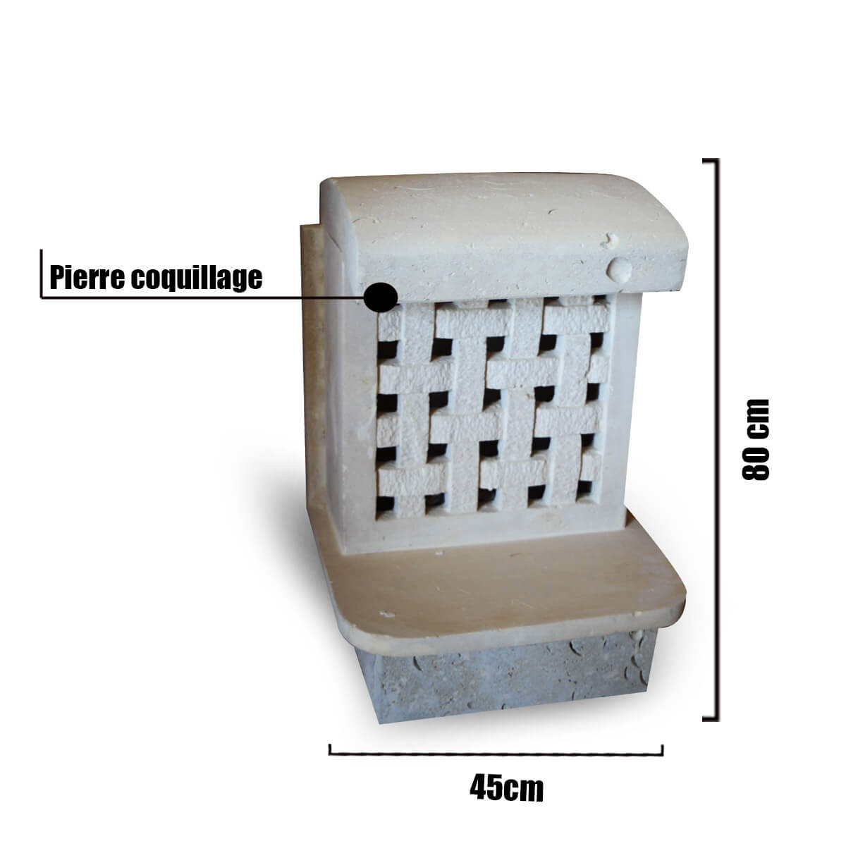 Borne extérieur en pierre et fait à la main – le modèle BM10 avec son design sublime et attirant, fabriqué en pierre coquillage , d’une dimension de 25 x 80 cm