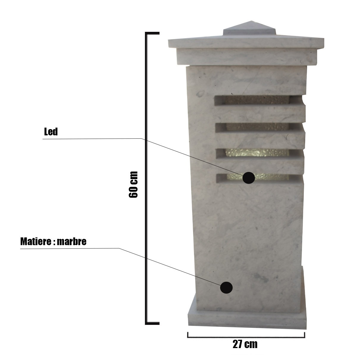 Borne lumineuse extérieur – le modèle BL03 avec son design chic et attirant fabriqué de marbre pure et éclairage Led lumière du jour de dimension 27*60 cm