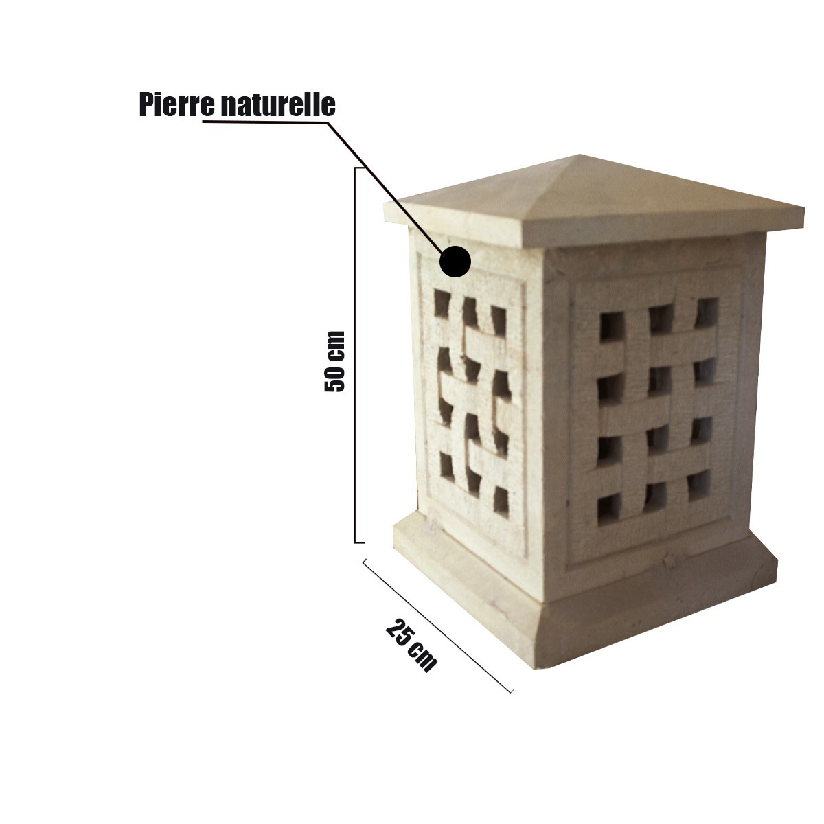 Borne lumineuse pour jardin en pierre – le modèle BLP03 avec son design sublime et attirant, fabriqué en pierre coquillage, d’une dimension de 25 x 50 cm – Livraison toute la Tunisie
