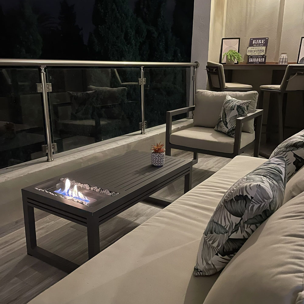 Vous allumez la cheminée avec un briquet et l’éteignez en étouffant le feu. En outre, il est également possible d’ajuster la taille de la flamme sur ce brûleur à l’éthanol, Si vous construisez votre propre cheminée bioéthanol, vous ne devez utiliser que des matériaux non combustibles et garder une distance de sécurité par rapport aux objets inflammables.