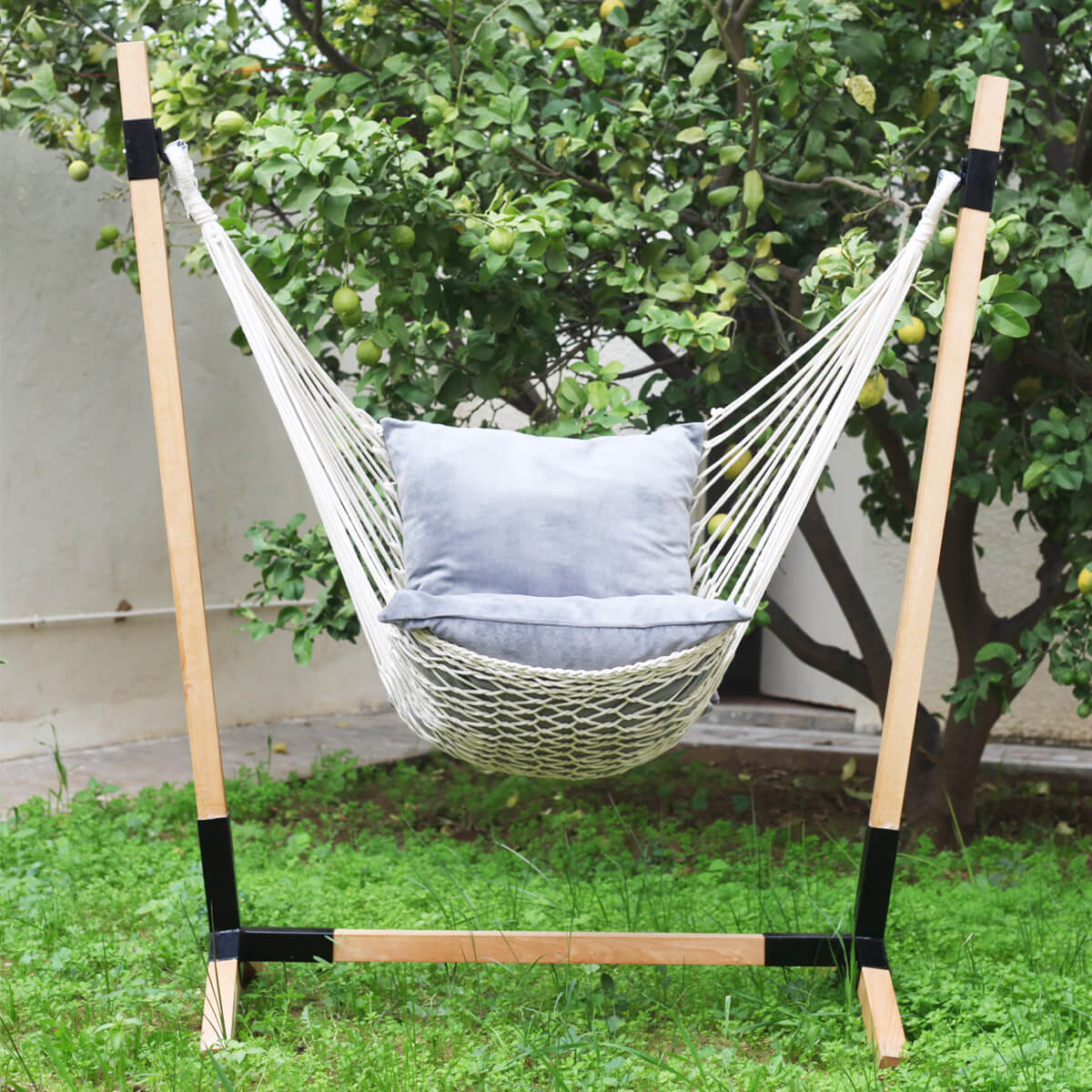 Chaise Hamac macramé avec support en bois