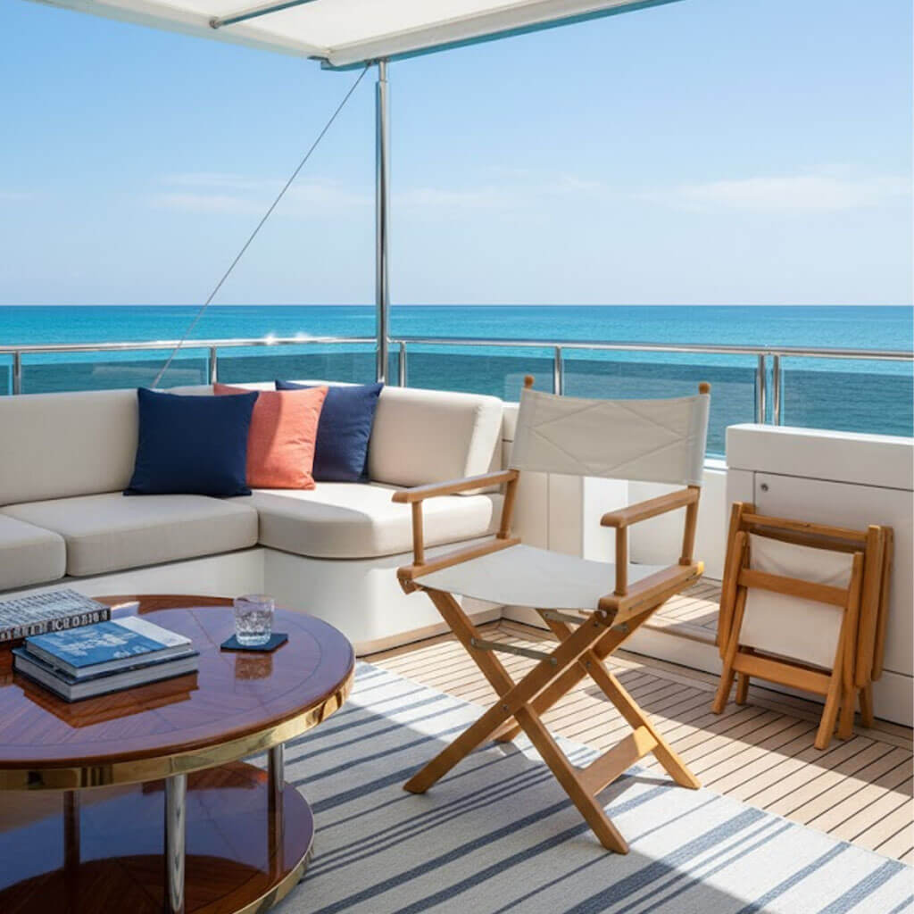 Chaise metteur en scène en bois hêtre pour extérieur et bateau, robuste et très confortable -Fabriqué en bois hêtre massif avec tissu acrylique et imperméable et d’une dimension de 52x44x72 cm