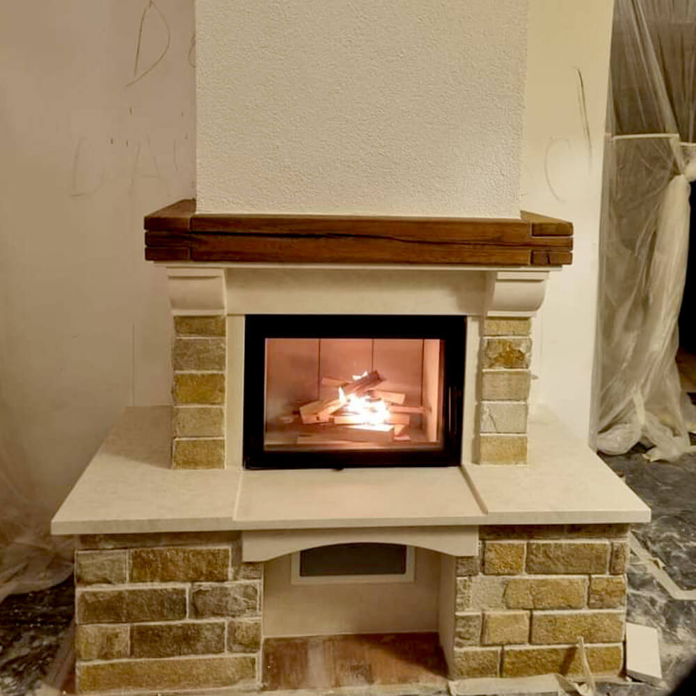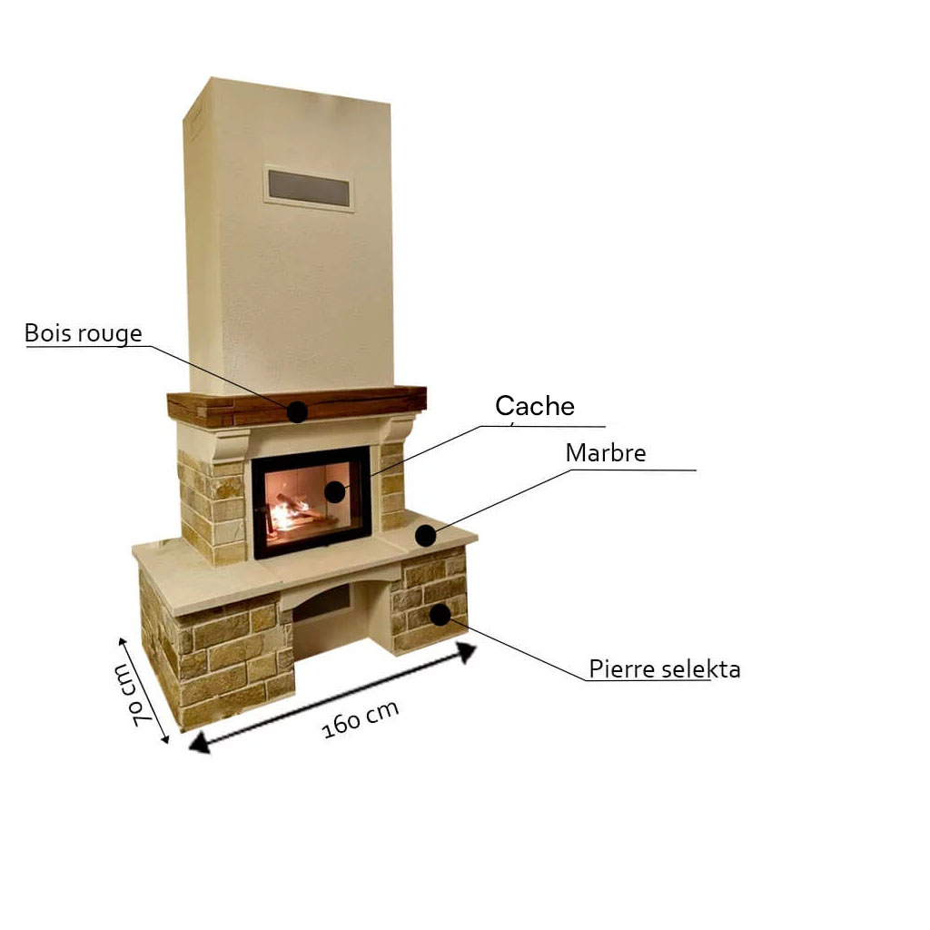 • Socle Fonctionnel : Ses larges tablettes latérales en pierre offrent un espace idéal pour vos objets de décoration ou pour garder vos accessoires de cheminée à portée de main.