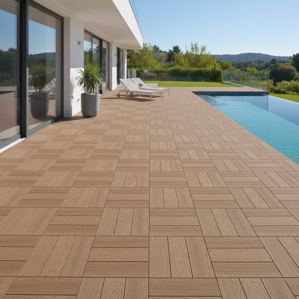 Profitez d’une terrasse exceptionnelle alliant l’attrait du bois à la robustesse du béton grâce à notre dallage de 50×50 effet bois en béton fibré, une solution esthétique et pratique pour vos espaces extérieurs.