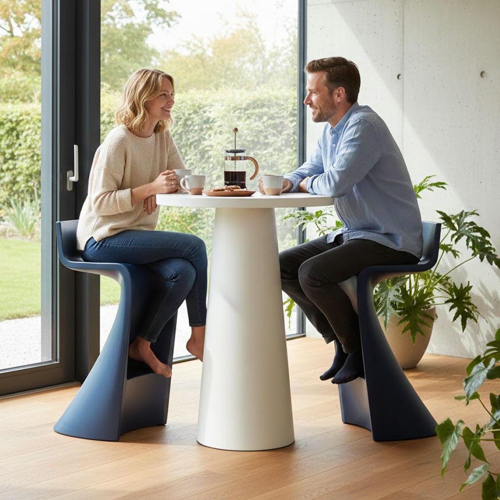 Cet ensemble est idéal pour créer un « coin café » dynamique dans une cuisine ouverte ou pour aménager un espace de réception compact sur un balcon urbain. Son look sculptural en fait une pièce maîtresse qui ne passera pas inaperçue.