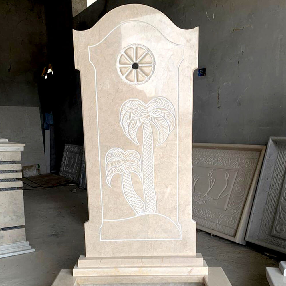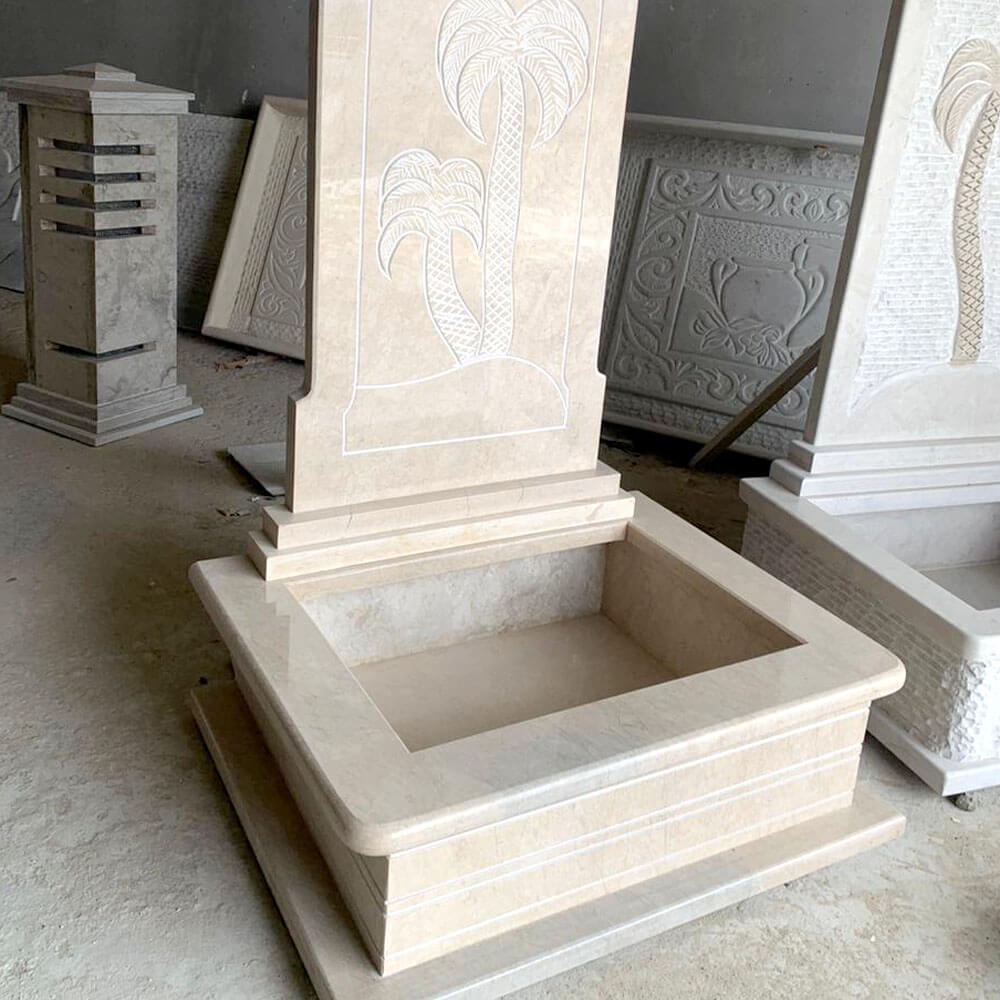 Fontaine murale en marbre motif palmier FMM07