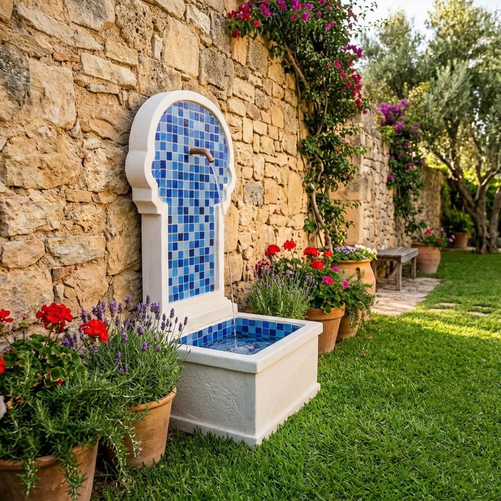 L’astuce déco : Entourez la base de la fontaine de galets blancs ou de quelques plantes grasses pour créer un véritable point d’eau zen dans votre jardin.