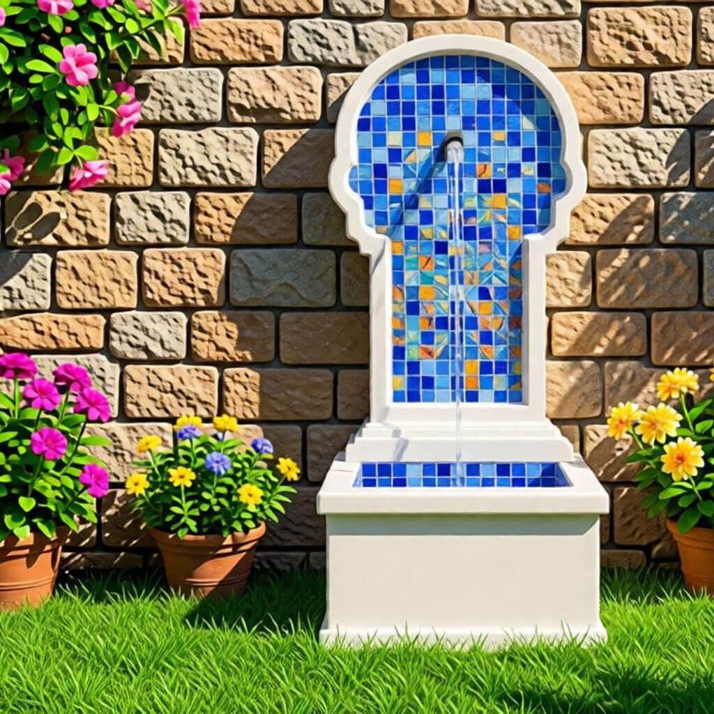 Fontaine murale en mosaïque pâte de verre