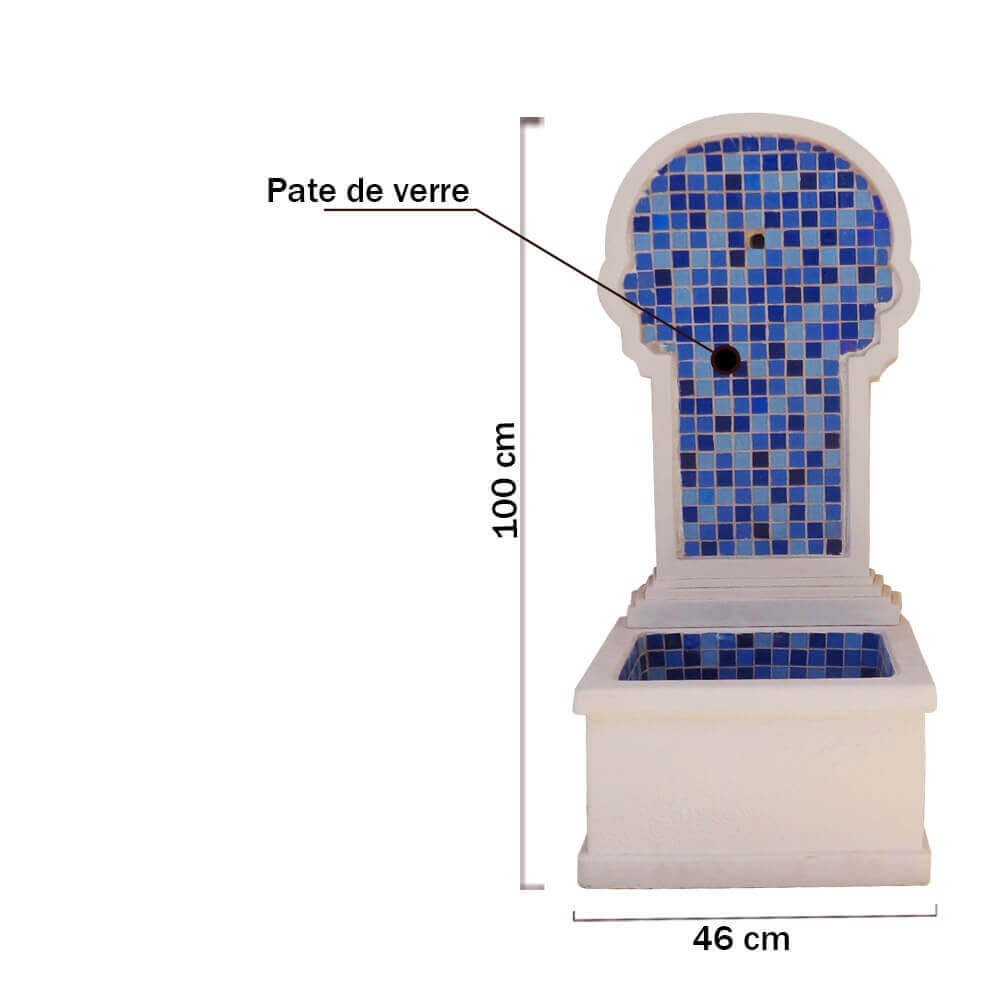 Notre fontaine murale en mosaïque et en béton fibré est conçue pour traverser les années sans prendre une ride. Plus légère que le béton classique mais deux fois plus résistante, elle est le choix idéal pour nos climats. Dimensions : 48 cm (L) x 46 cm (P) x 100 cm (H).