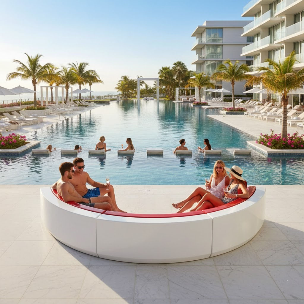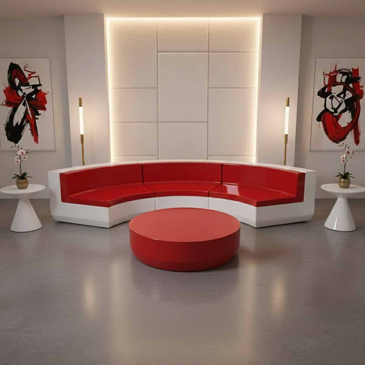 modèle proposé par nos designers est une merveille il est composé de 3 divans de modèle VRSALON un kit de salon en resine en demi cercle proposé pour les usages commercial, boite de nuits , lounges, hôtel et meme pour les résidentiels