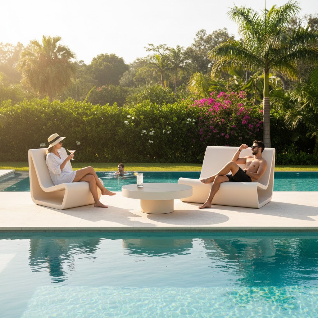 Kit salon en resine modèle COSY composé d’un divan, fauteuil et une table basse ronde sur pied – Parfait pour l’extérieur comme pour l’intérieur, cet ensemble de jardin est idéal pour le jardin, la terrasse, le balcon, la véranda ou même le salon.
