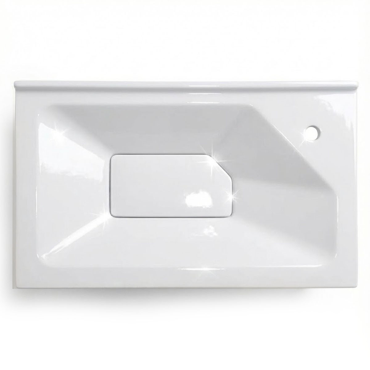 La zone d’évacuation est dotée d’une Cache Bande , parfaitement intégrée dans la géométrie de la vasque pour un rendu minimaliste.