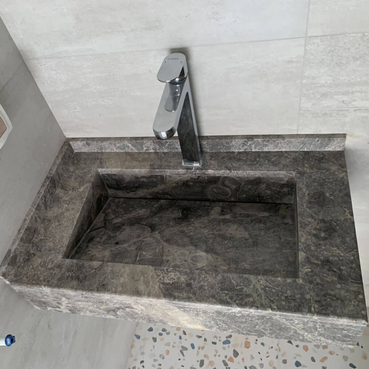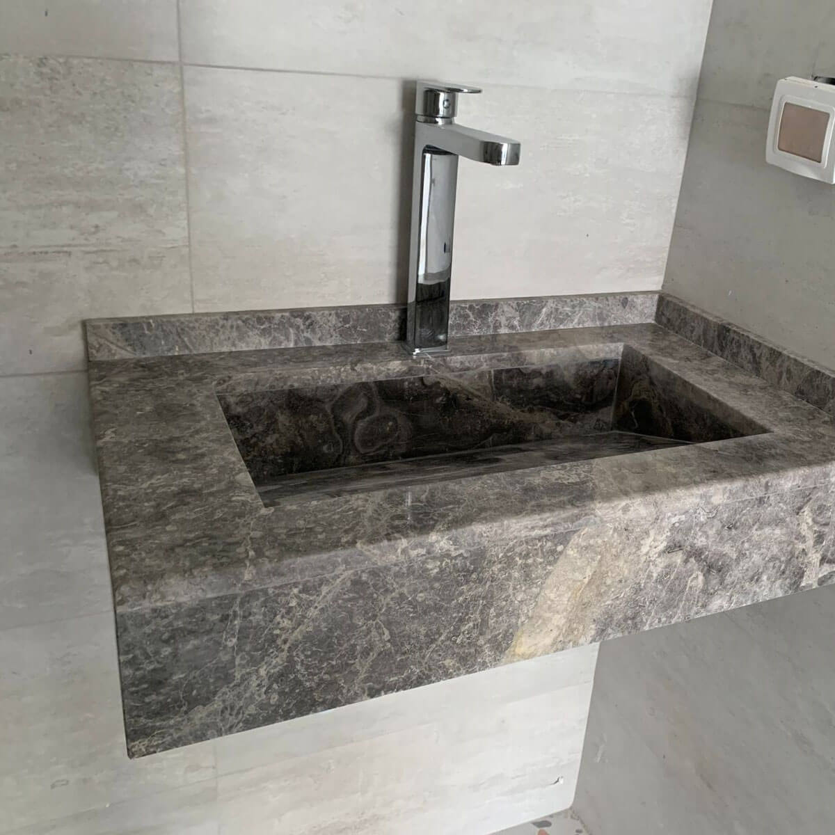 Lavabo suspendue en marbre Tindra gris LMT70