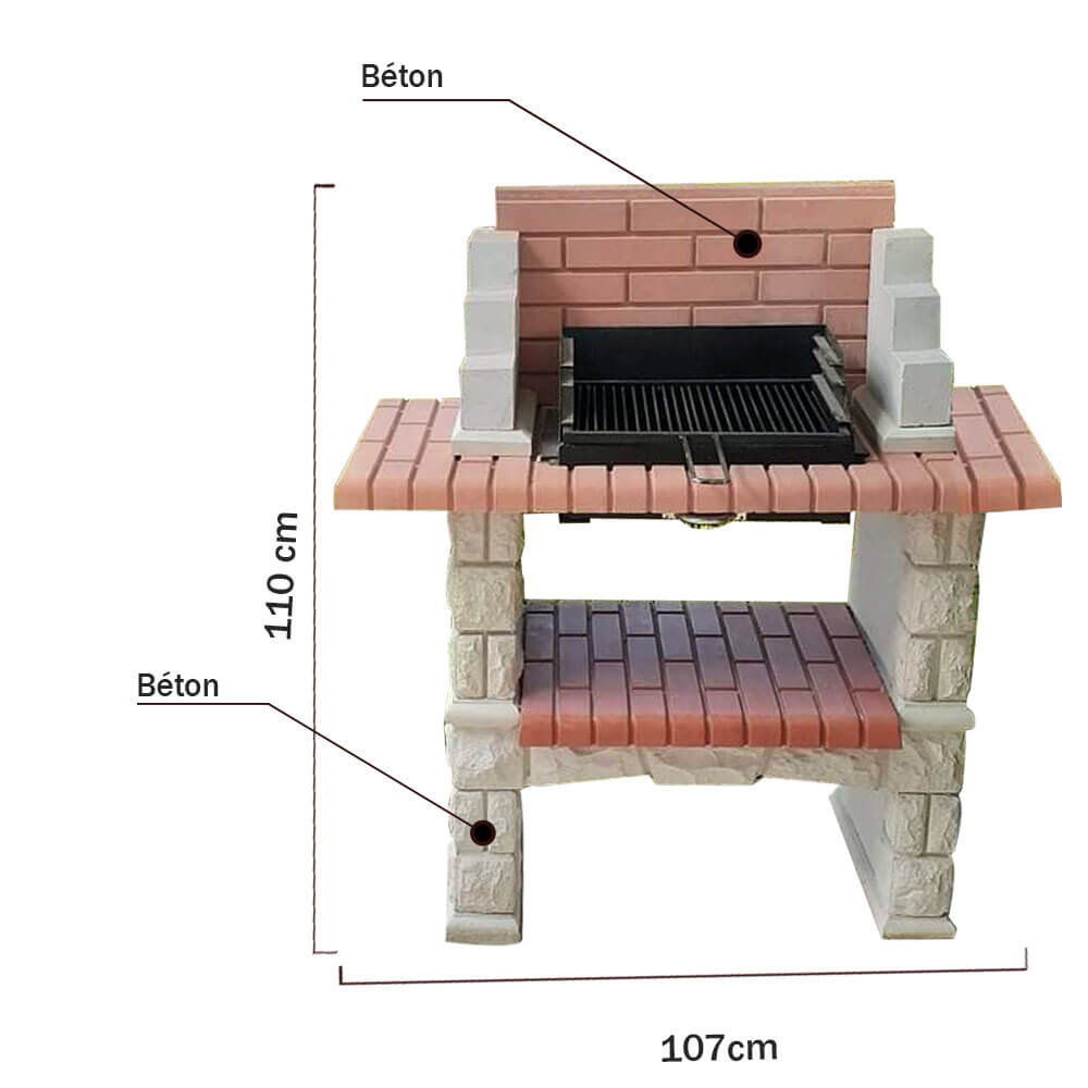 un mini barbecue en béton avec grilloir intégré pas cher avec étagère inferieur pour rangement, Possibilité d’augmenter ou personnaliser vos dimensions