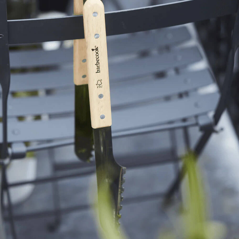 Pince a barbecue en acier inoxydable – dotée d’un manche ergonomique en bois et d’une longueur idéale de 40cm – Convient pour retourner les préparations – Certifié FSC®