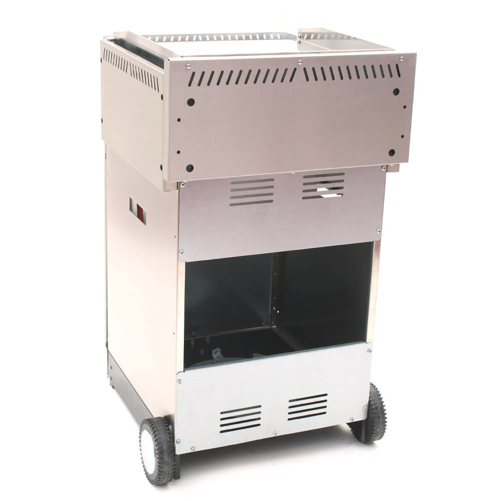 Matériaux robuste : Couvercle double paroi en inox avec thermomètre intégré ; chambre de combustion en inox ; panneau de commande, tablettes latérales