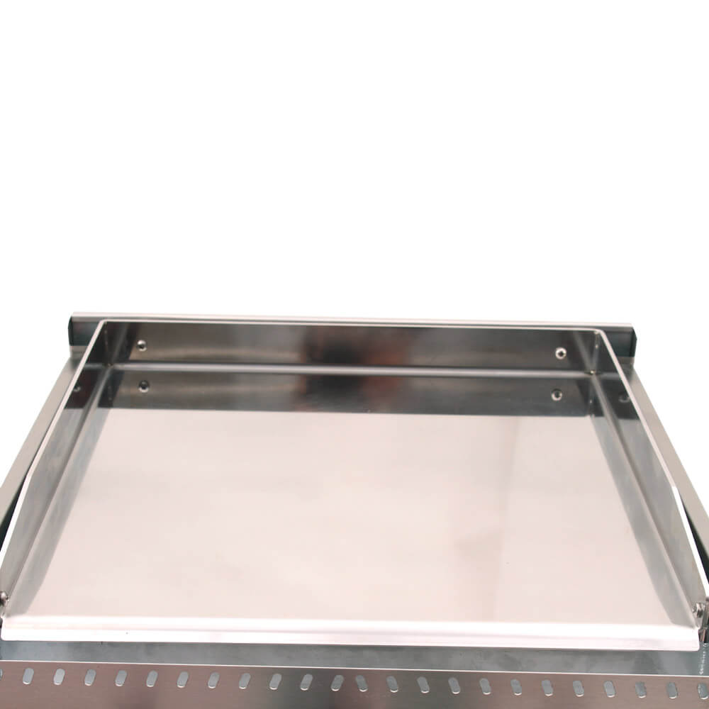 Pratique et efficace: pour des viandes à la fois juteuses et croustillantes, pour la préparation des accompagnements ; peut également servir de surface de stockage une fois le couvercle fermé ; le tiroir de maintien au chaud fournit encore plus d’espace pour réserver vos aliments