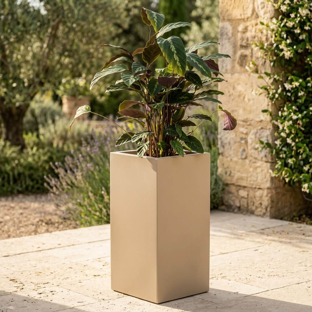 Pot cubique haut en résine modèle CUBO, trouve toujours sa dimension dans n’importe quel espace, domestique ou commercial. Grâce à son design linéaire et à ses couleurs vives chaque ambiance devient chaleureux, animé et original.