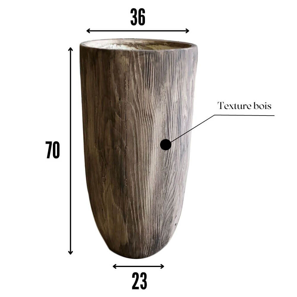 Décorez votre jardin, terrasse ou balcon avec ce pot de fleur effet bois, en GRC , le modèle CP019 ajoutera une élégance pour l’entrer ou à l’intérieur, d’une dimension de 23 en bas 36cm de haut et 70cm de hauteur.