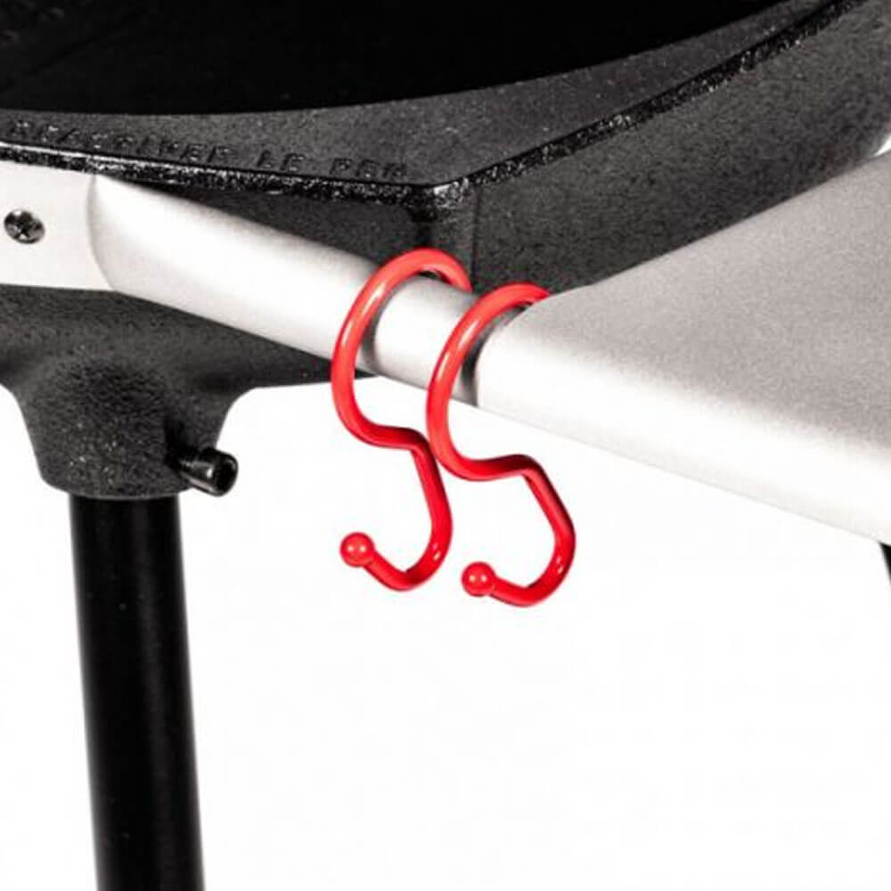 - Ce barbecue est composé d’un chariot stable et robuste avec plateforme de rangement et crochets porte-accessoires.