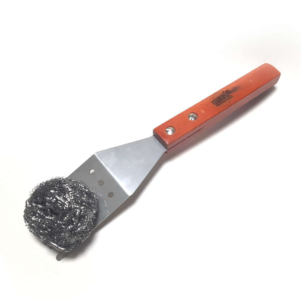 Spatule nettoyage pour barbecue – le modèle SN01 est en inox satiné avec une poignée en bois rouge ergonomique résistante à la chaleur – d’une dimension de 33x6cm