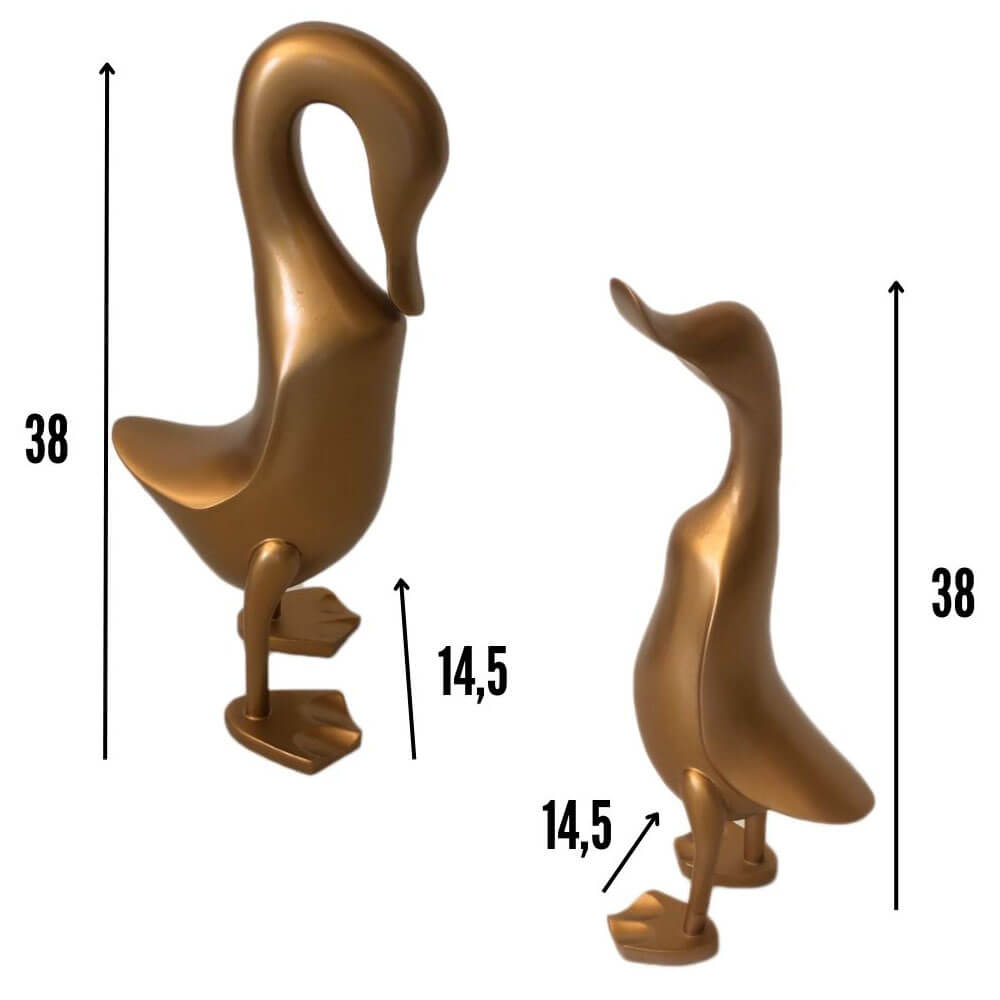 Avec des dimensions de 38*14.5 cm, ces canards dorés en résine sont suffisamment grands pour attirer l’attention, tout en restant suffisamment discrets pour se fondre dans votre décoration existante. Leur design élégant et leur finition dorée brillante les rendent particulièrement attrayants, ajoutant une touche de sophistication à votre décoration.