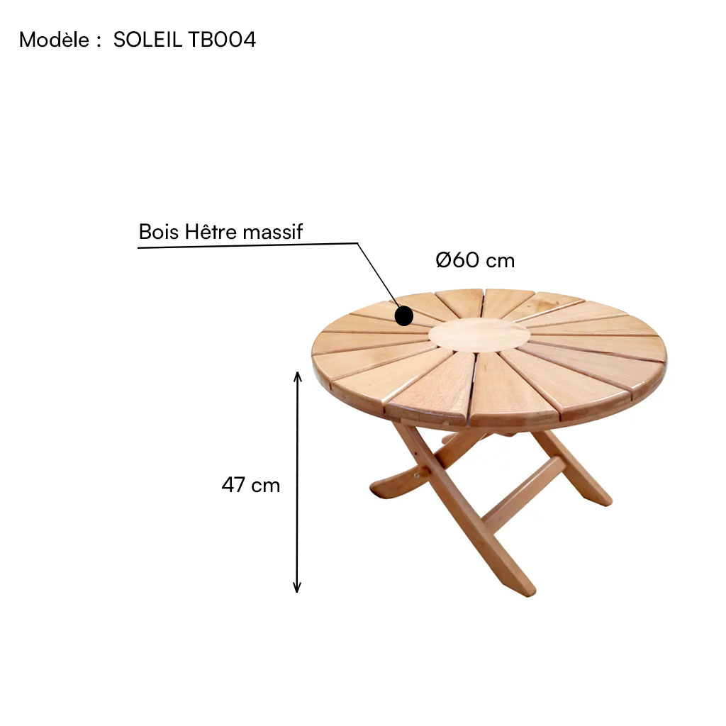 Table Basse Pliable en bois hêtre soleil TB004