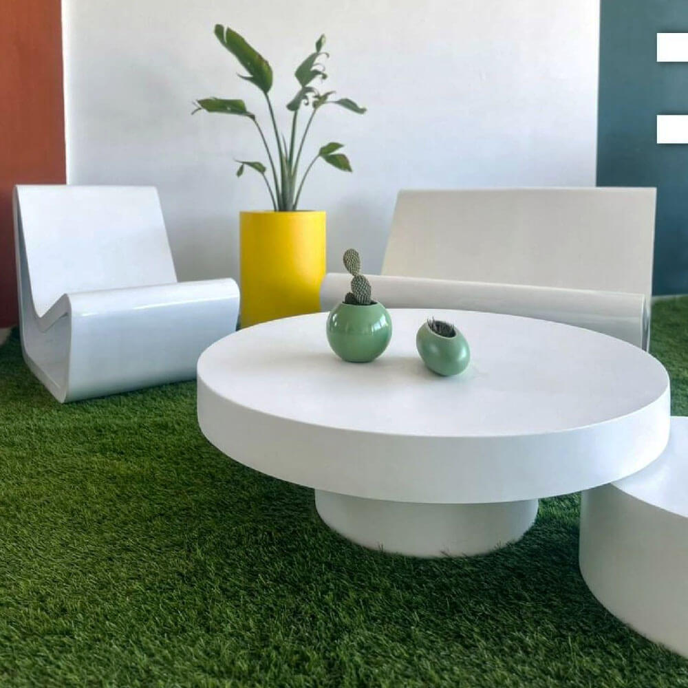 Table basse ronde sur pied en resine pour extérieur et intérieur, robuste et très confortable – Résistant aux températures extrêmes (-60ºC à +80ºC) – d’une hauteur de 35cm et Ø100cm
