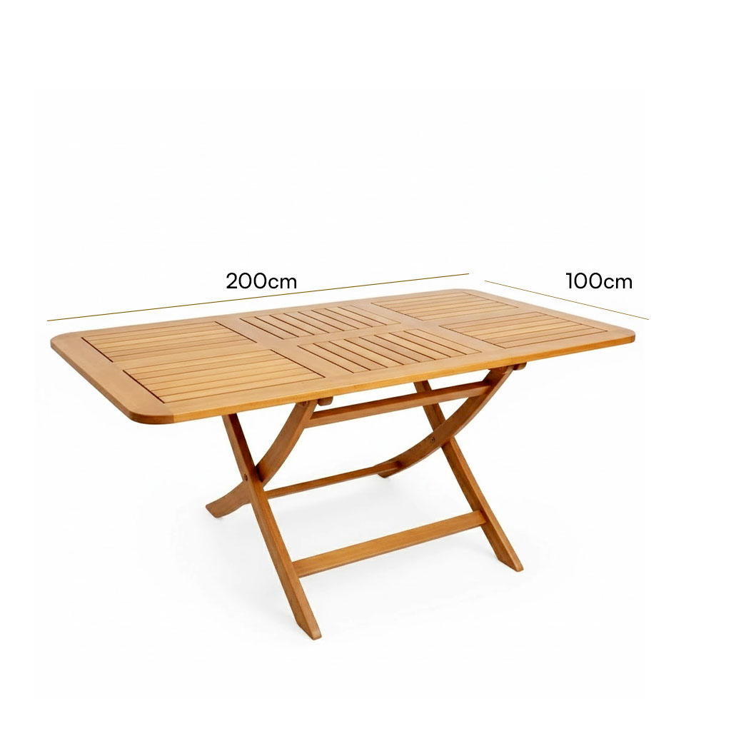 Table pliante rectangulaire en bois hêtre pour extérieur et intérieur, robuste et très pratique – finition naturelle du bois massif s’adapte parfaitement à tous les styles de décoration, du bohème chic au moderne rustique, d’une dimension de 200x100x72cm