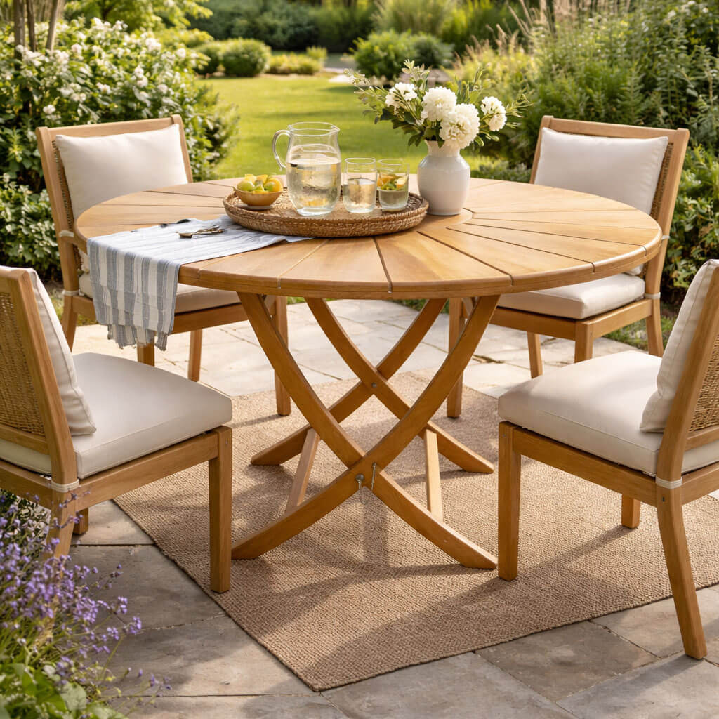 Table ronde pliable en bois hêtre pour extérieur et intérieur, robuste et durable – Conçue en hêtre massif, cette table ronde de 120 cm de diamètre allie robustesse et design
